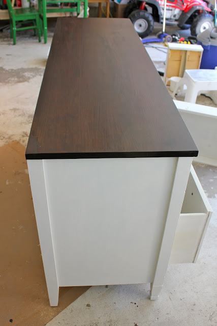 This is how it looked after 2 coats of paint and 5 coats of stain.  The stain was a mix of Dark Walnut and Ebony.  Paint is Annie Sloan Pure White.